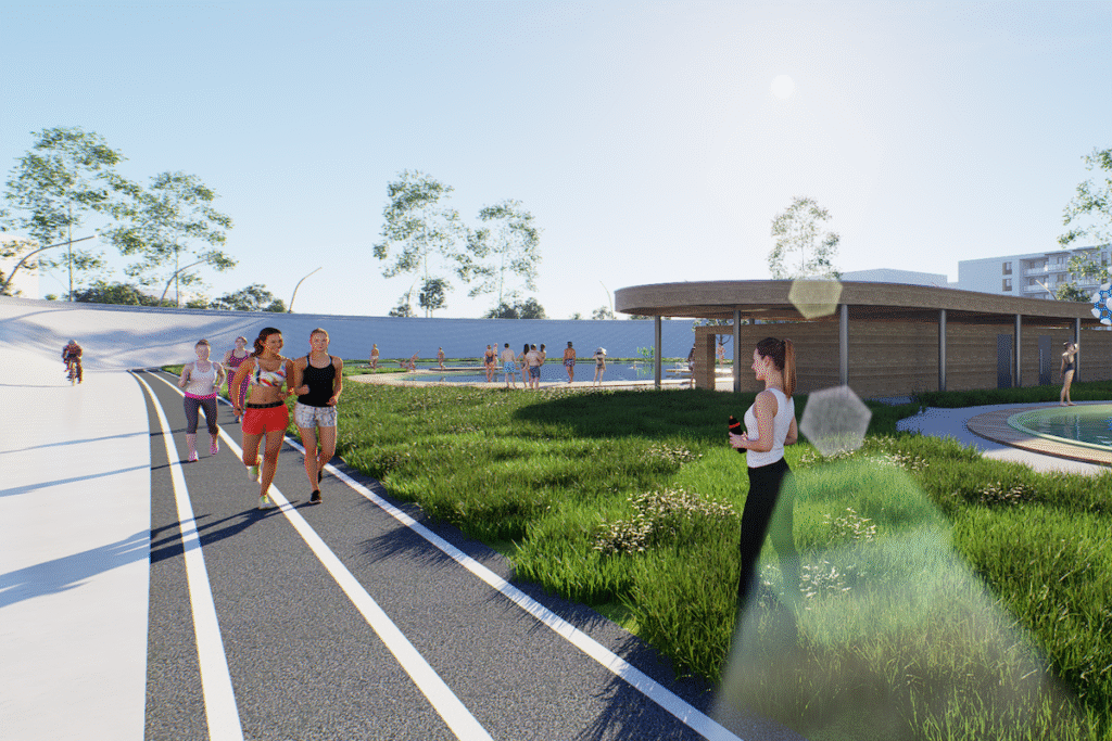 Pierwszy w Warszawie eko basen, bieżnia oraz tor kolarski dadzą możliwość amatorskiego trenowania pływania, biegania i kolarstwa oraz organizowania w jednym miejscu zawodów triathlonowych.